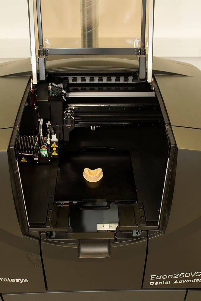 The device uses VeroDent products made from MED670 printing stock, a strong, durable material that offers a natural colour effect and allows for rich detail.